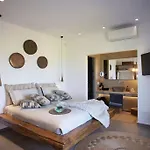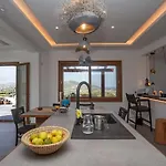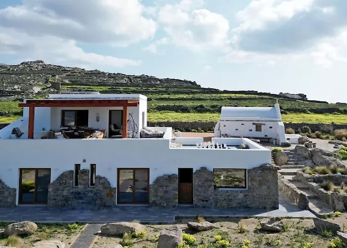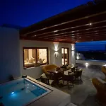 Die Villa Ktima Lipsi, Panorama Pool Views Klouvas verfügt über eine Terrasse mit Blick aufs Meer und ist 10 Autominuten vom Flughafen Mykonos entfernt gelegen. Diese Villa in Klouvas bietet seinen Gästen ein entspannendes Erlebnis mit einem Whirlpool.