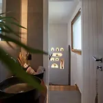 Die 3-Zimmer-Villa Ktima Lipsi, Panorama Pool Views verfügt über ein Badezimmer mit einer getrennten Toilette und einer Dusche. Ein Haartrockner und Handtücher stehen auch zu Ihrer Verfügung.
